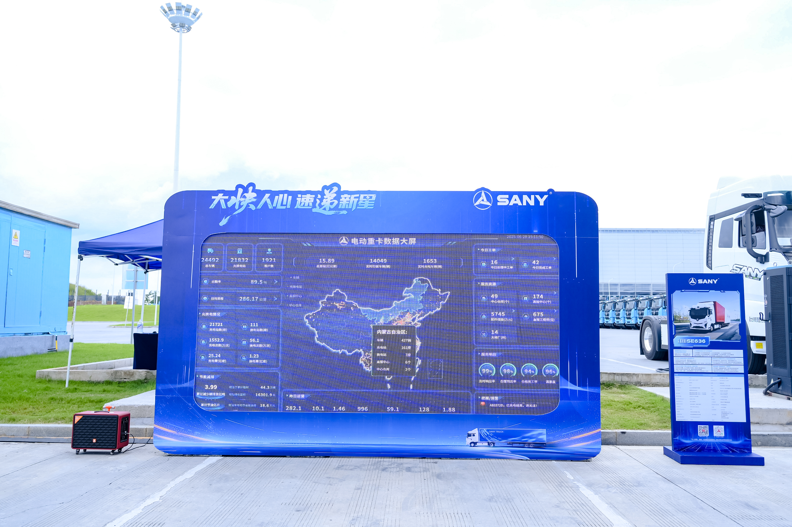 Rolling out models including the SE882, battery charging/swapping parent-child trucks, and port tractors.
